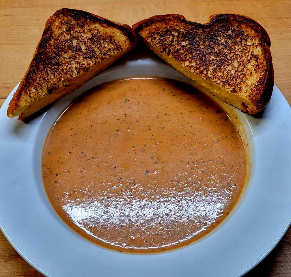 - Delicious served with croutons and a garnish of parsley or thyme and a swirl of creme fraiche, sour cream, plain Greek yogurt. And of course grilled cheese!