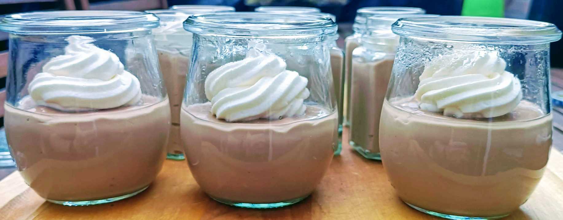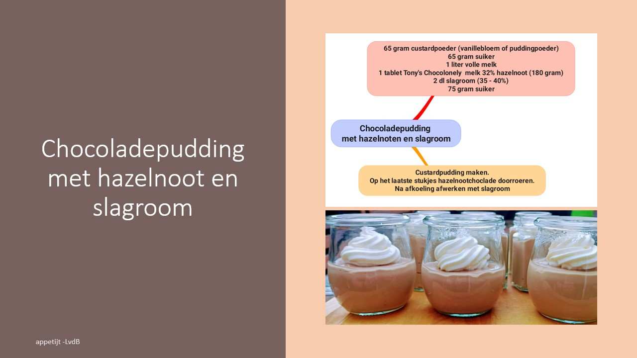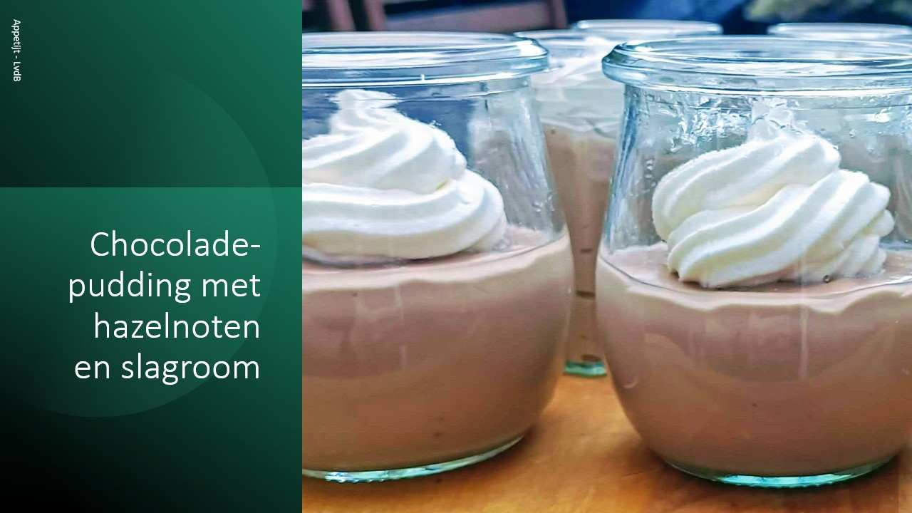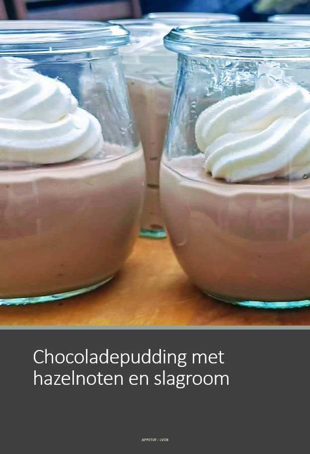 Chocoladepudding met hazelnoten en slagroom