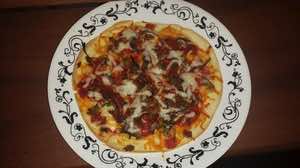- TACO PIZZA: brown some ground turkey or beef season with taco seasoning. In place of pizza sauce use taco sauce. After removing from oven top with shredded lettuce, diced tomatoes, jalapeños and picante sauce, some sour cream optional A pizza stone is wonderful for these too