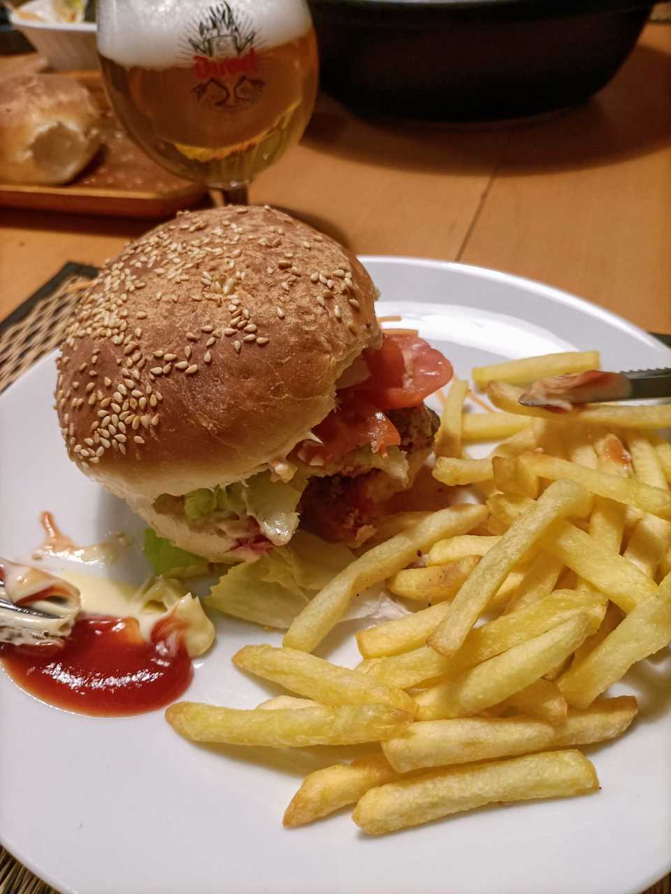 - Verhit de boter tot het schuim is verdwenen en schroei hierin de hamburgers aan beide zijden dicht.