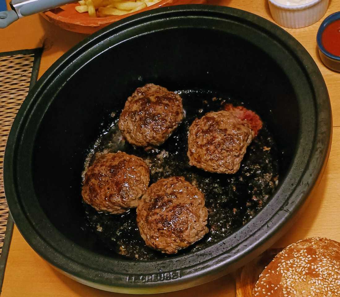- Het is rundsvlees, het mag dus nog een beetje licht rood zijn in de kern maar zorg wel dat ze ook binnenin warm zijn.