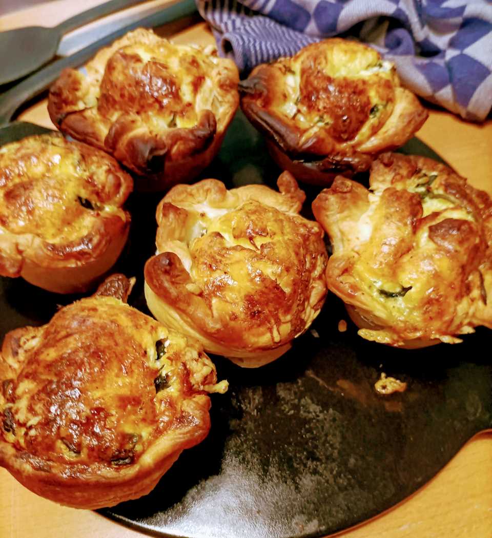 - Bladerdeeg gelijkmatig verdelen over de muffinvorm.