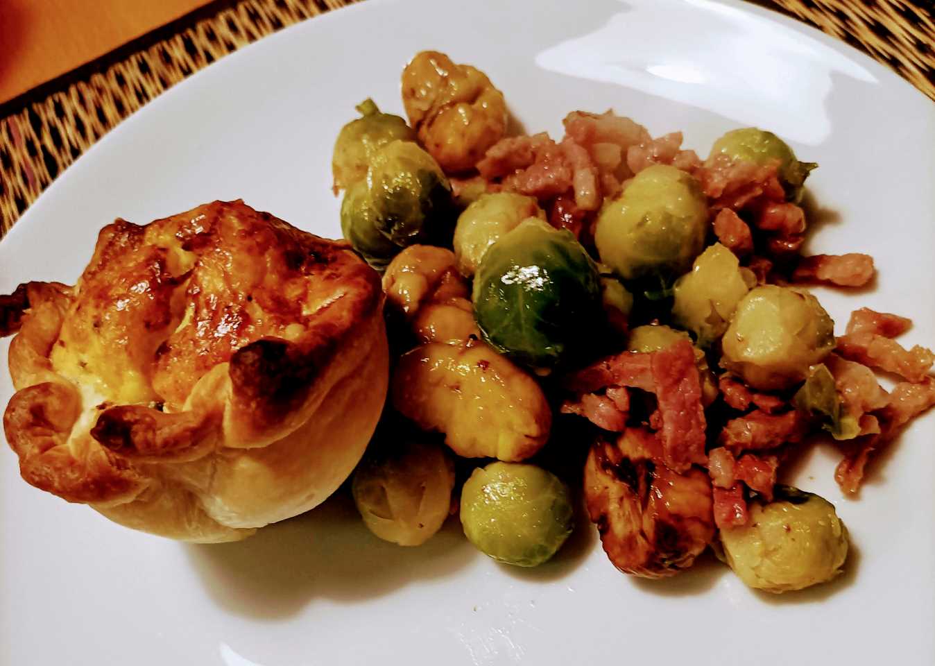 - Room met het ei loskloppen en doe op iedere muffin 2 tot 3 eetlepels van dit beslag.
