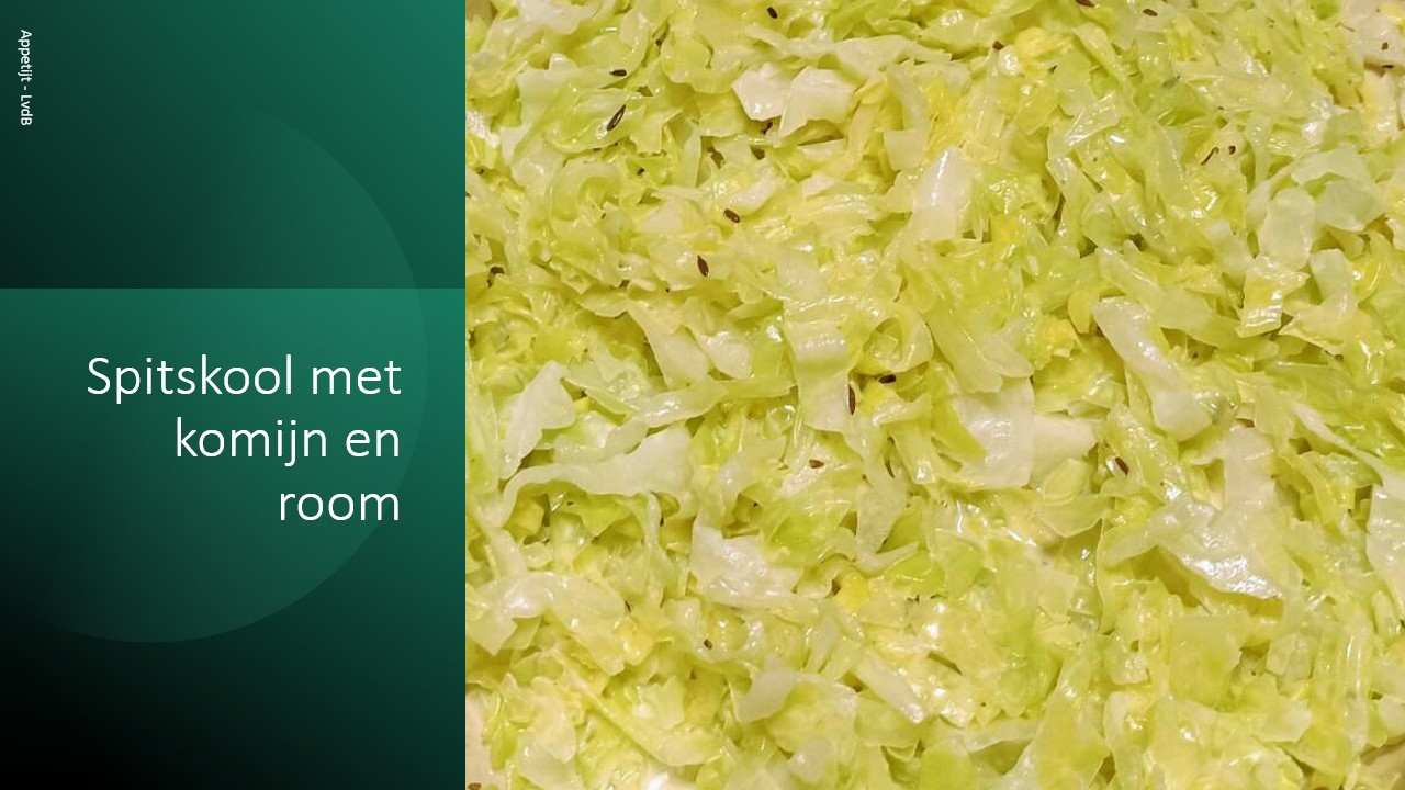 - Komijnzaadjes licht vijzelen en met een scheutje room bij de spitskool voegen.
