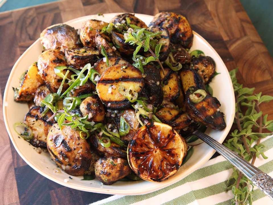 Simple Grilled-Potato Salad With Grilled-Lemon Vinaigrette Recipe