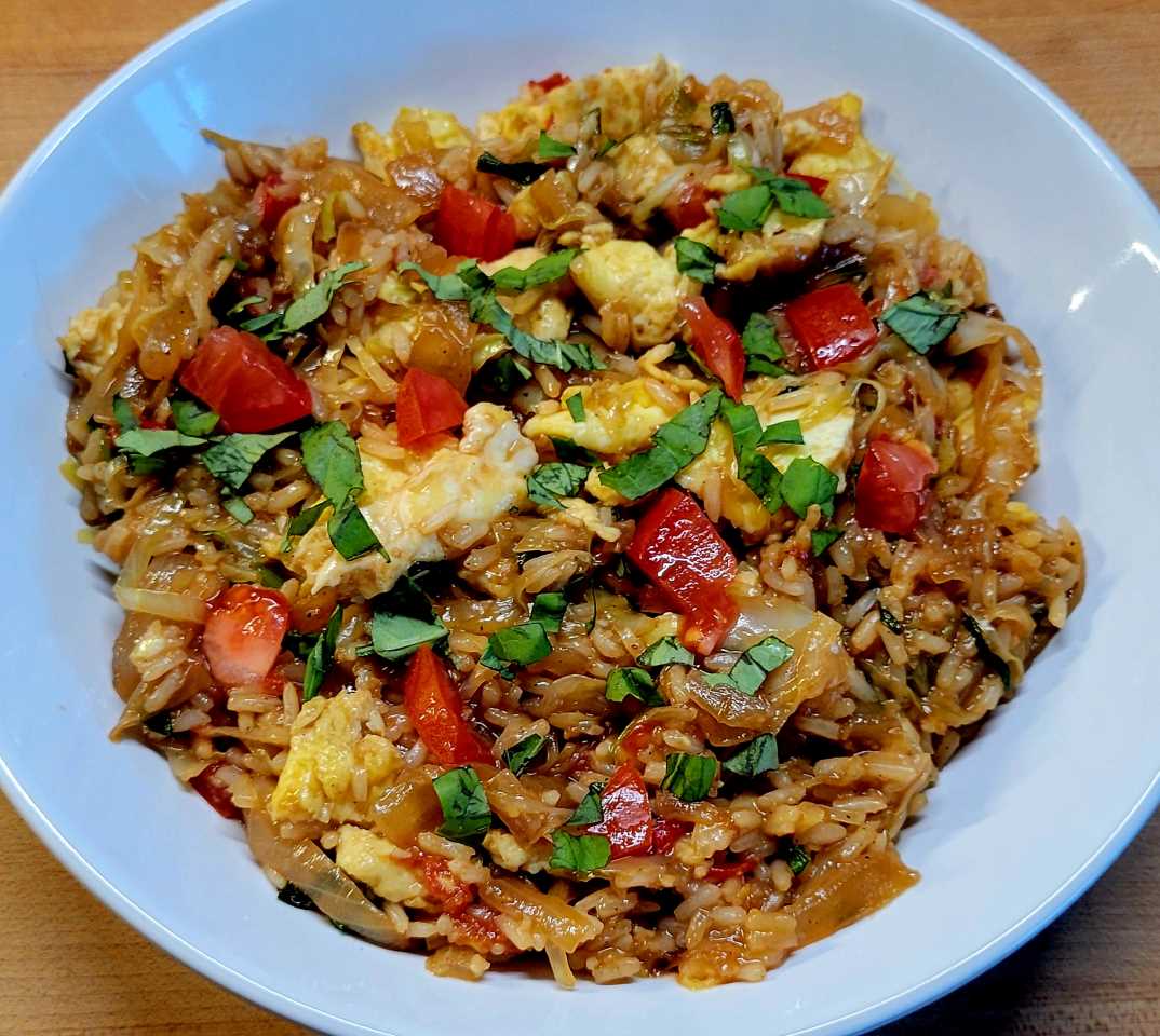 - Fry the shallots until fragrant, then add the cabbage and stir-fry until soft, then add the eggs.