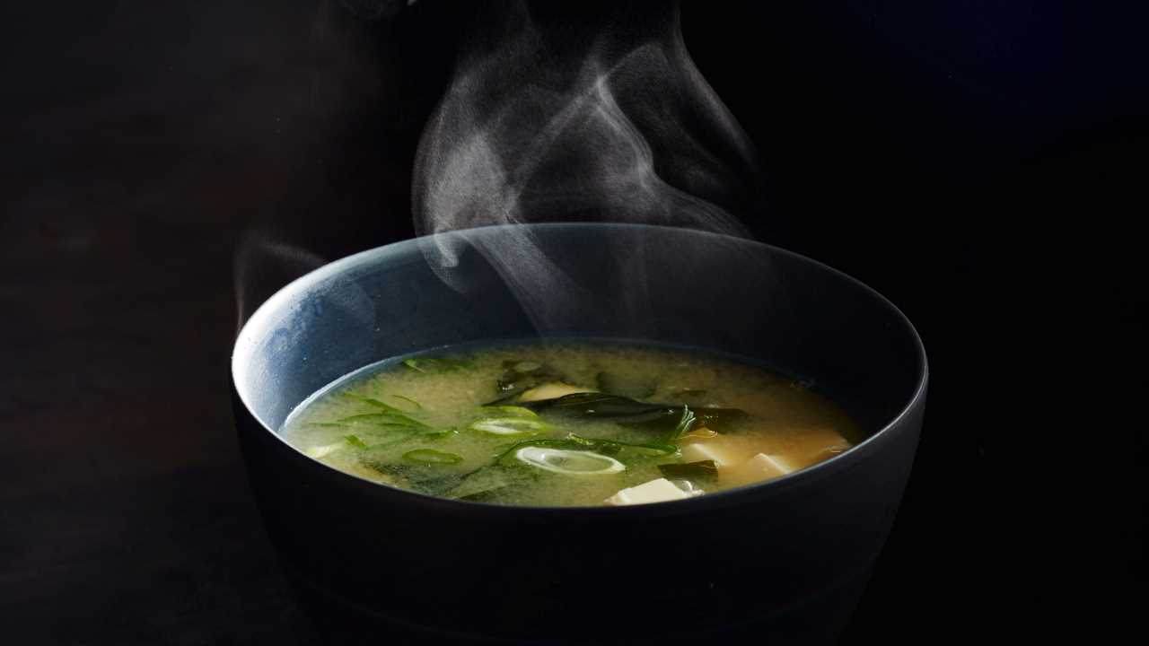 - 2. Bring dashi to a simmer in a small saucepan. Add tofu and wakame and return to a very gentle simmer. Remove from heat. Submerge a fine-mesh sieve into liquid, add miso to sieve, and stir until miso dissolves.