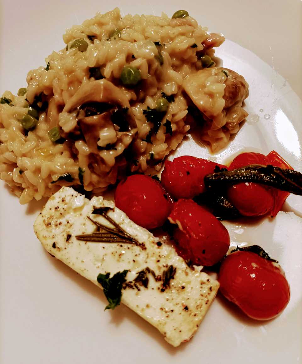 - Van het vuur weg de geraspte kaas door de rijst roeren.