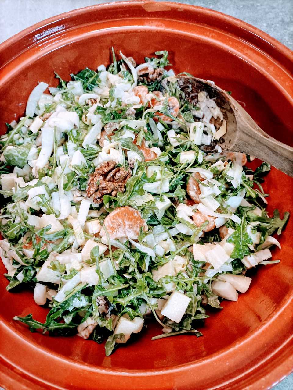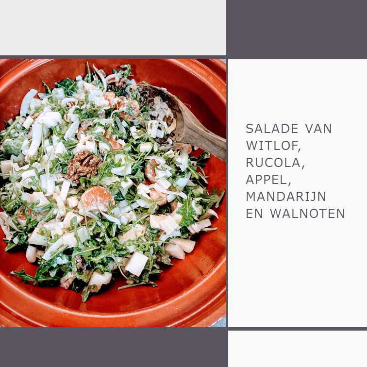 Witlof-rucolasalade met appel, mandarijn en walnoten