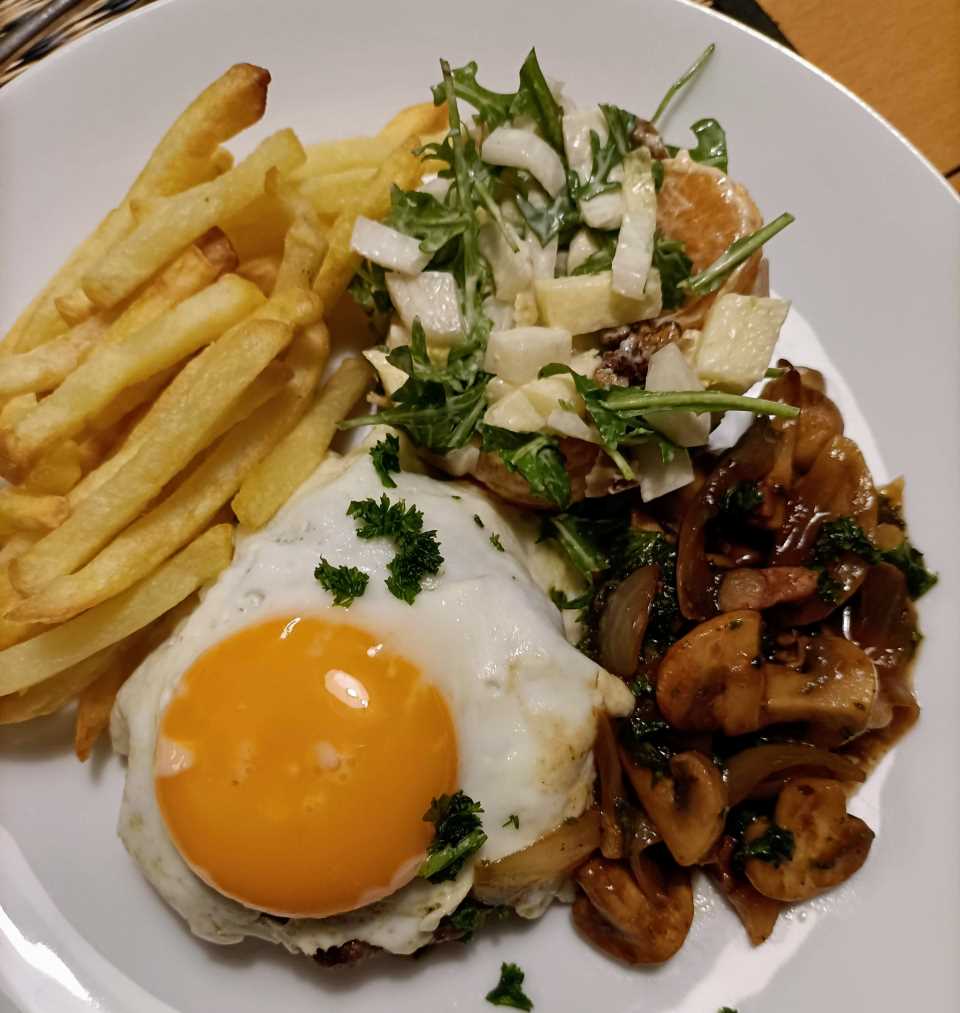 - Alle ingrediënten goed mengen en in slakom serveren met enkele walnoten er bovenop.