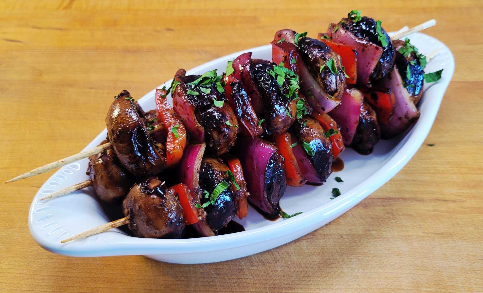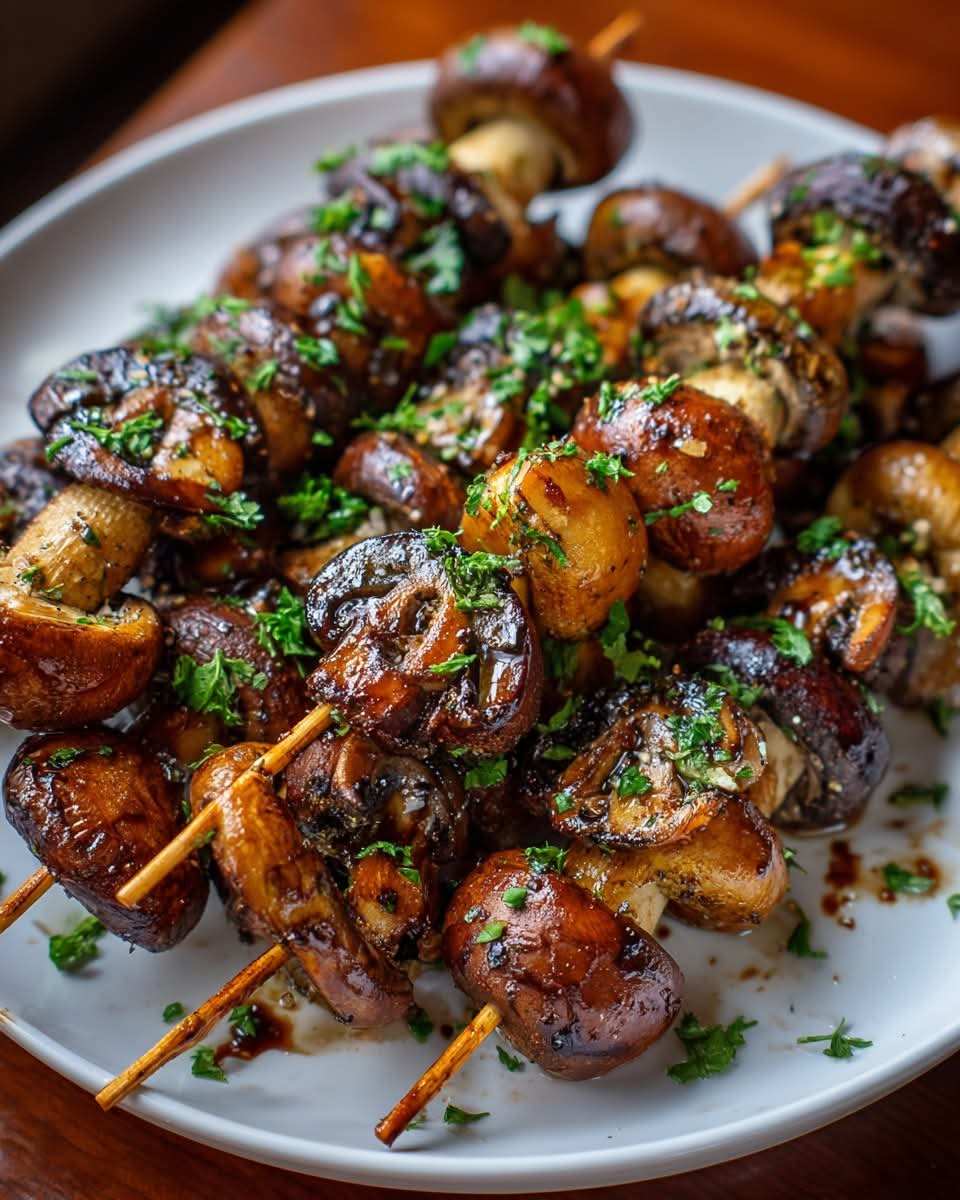 - Grill skewers for 8–10 minutes, turning occasionally, until mushrooms are tender and slightly charred.