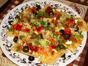 - 1. Spread ½ cup beans in middle of large plate, lay chips on plate slightly overlapping around edge of beans, and over top. Top with shredded cheese Microwave on high for 45 to 55 seconds or until cheese is melted.