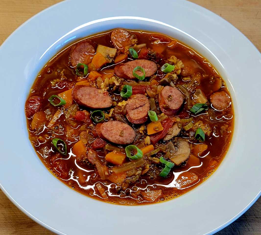 - 2 slices smoked ham or sausage (such as kielbasa), diced