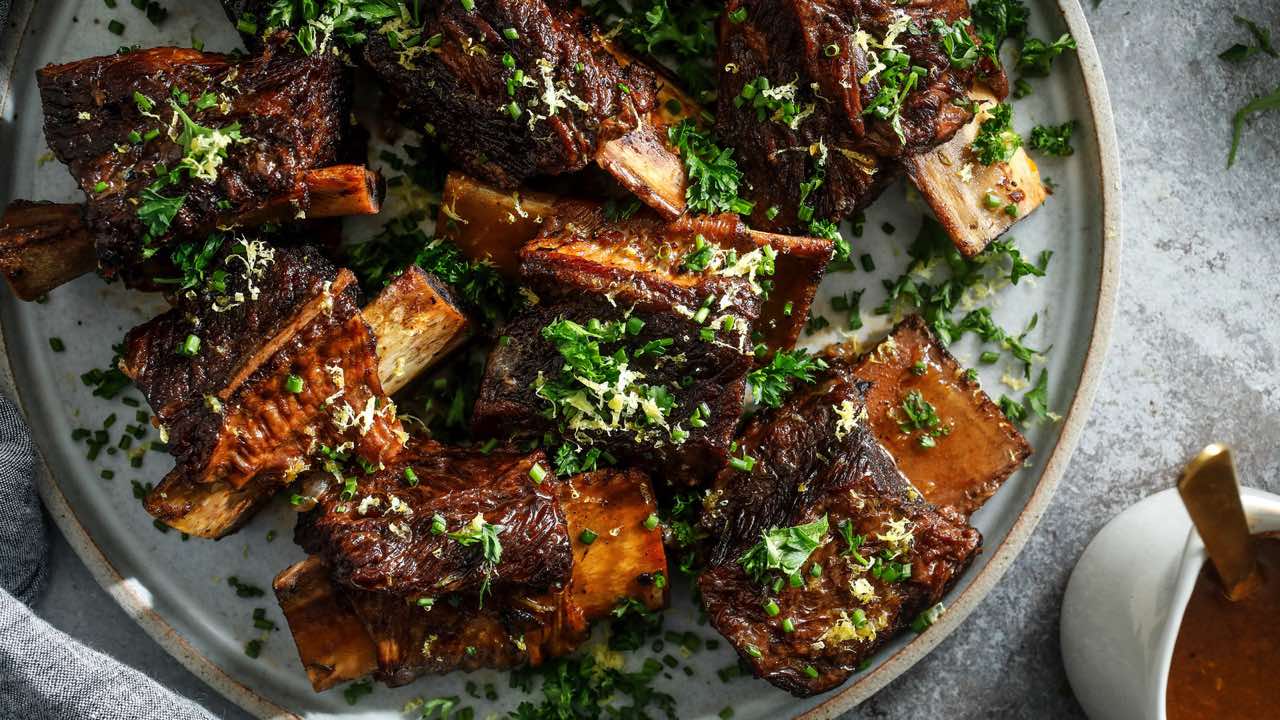 - 5 pounds bone-in short ribs, at least 1 1/2 inches thick