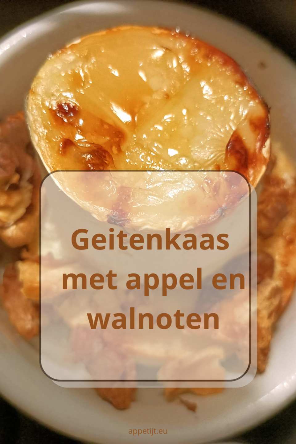 - Leg op iedere halve appel een plak geitenkaas en schik daarop een walnoot.