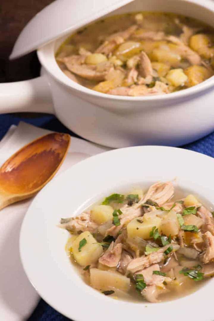 - Sancocho typically includes chunks of meat (beef, chicken, pork, or even fish), along with various root vegetables like potatoes, yuca, and plantains.