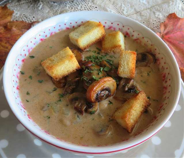 - Serve in heated bowls with some of the sautéed mushrooms on top as well as a few buttered croutons and a sprinkle of parsley.