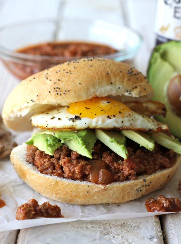 - 5. Serve sloppy joes on hamburger buns with a fried egg and avocado, if desired.