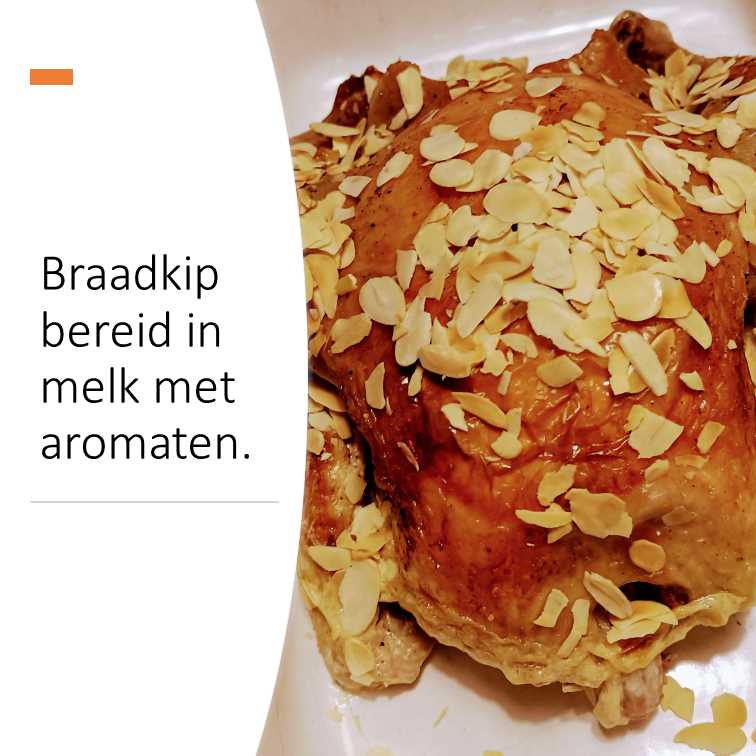 - Als de kip mooi gekleurd is uit de braadpan nemen en het vet verwijderen.