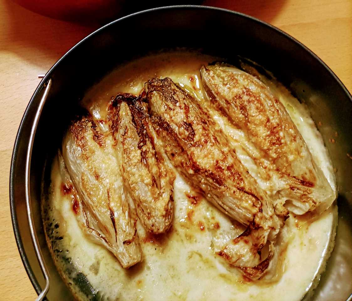 - Onder deksel 15 minuten laten sudderen (tijd is afhankelijk van de dikte van de wiltlofstronken).