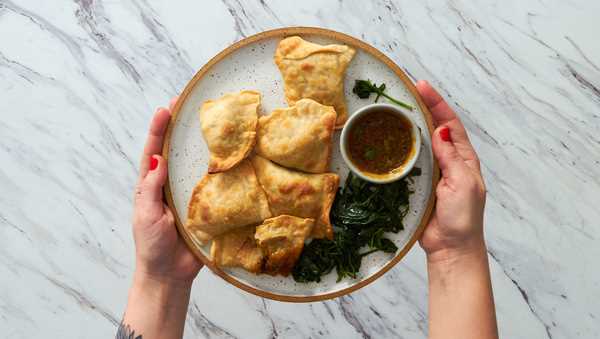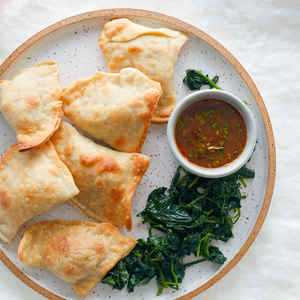 - These classic Indian samosas are hands down the tastiest triangles around. Crisp, flaky pastry is stuffed with potatoes, peas, and a whole host of spices including turmeric and garam masala. We use empanada doughs as a shortcut for homemade dough, and bake the samosas rather than fry for a hands-free, mess-free technique. A tangy apricot and onion chutney might just be our new favorite put-it-on-everything condiment, and is ideal for dipping here.