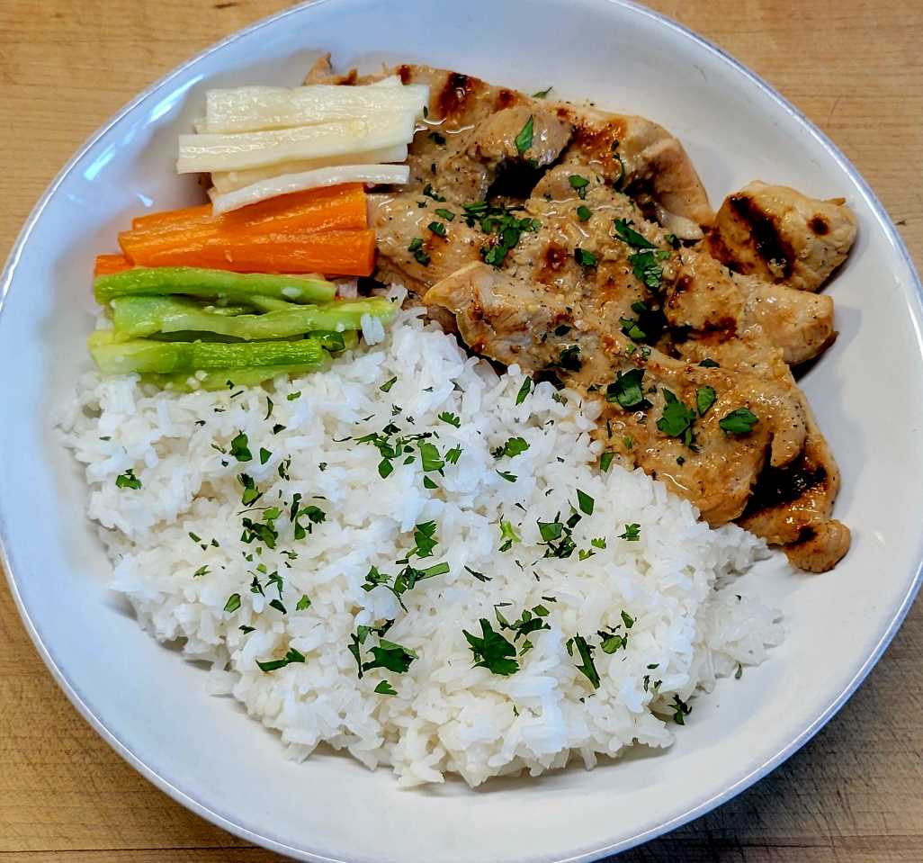 - Cut the meat into thin strips and serve with white rice and pickled vegetables.