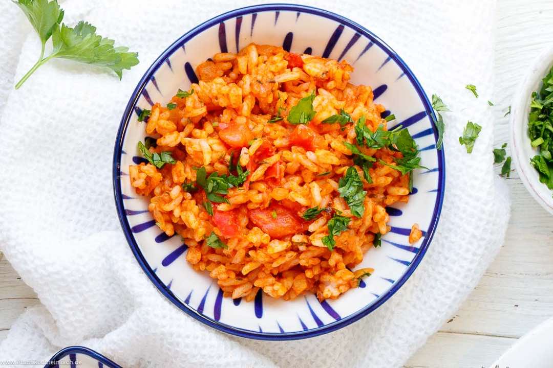 - 8. Nach Belieben noch gewaschene und klein geschnittene frische Petersilie oder Koriander dazu reichen. Dein griechischer Tomatenreis passt aus Beilage zu Fleisch und Fisch oder als Hauptspeise mit Salat.