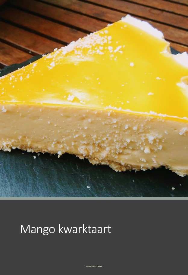 - Van de mangopuree 50 gram afnemen om later de kwarktaart mee af te werken.