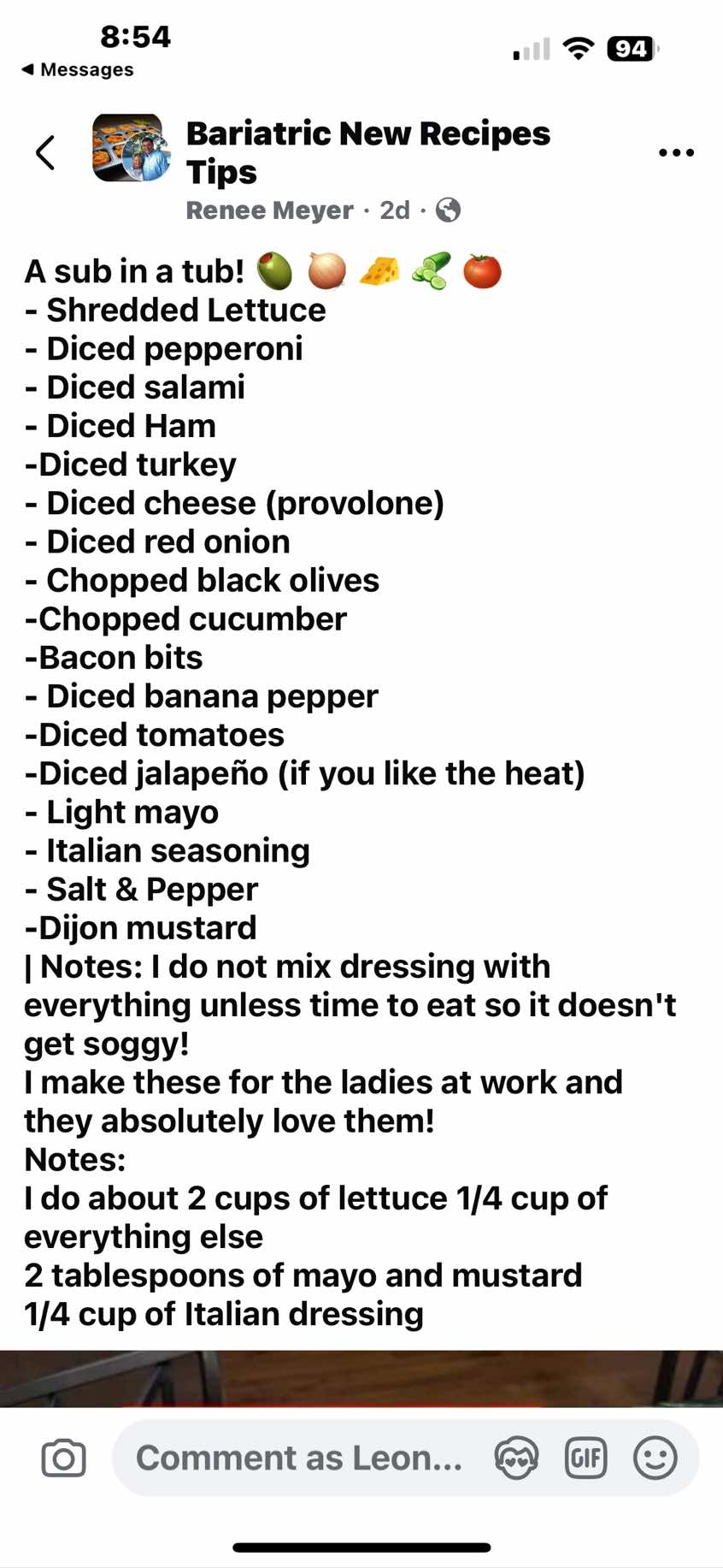 - I do not mix dressing with everything unless time to eat so it doesn't get soggy!