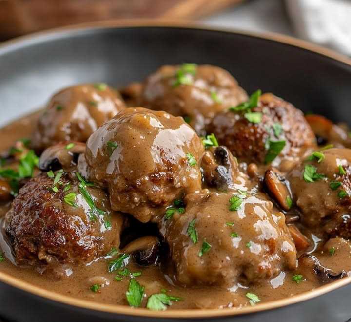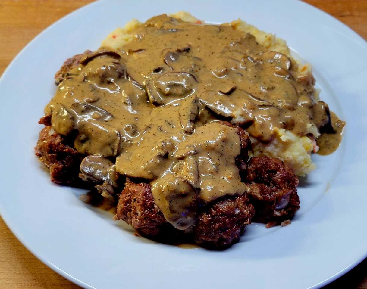 - Taste the gravy and adjust the seasoning with salt and pepper if needed. Serve the Salisbury steak meatballs with the mushroom gravy over mashed potatoes, rice, or pasta for a comforting and hearty meal.