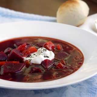 - Remove the pot from the heat. (If desired, you would strain the vegetables from your borscht now.) Stir the vinegar, sugar, pepper, and salt into the broth. Taste and adjust the salt and pepper as desired.