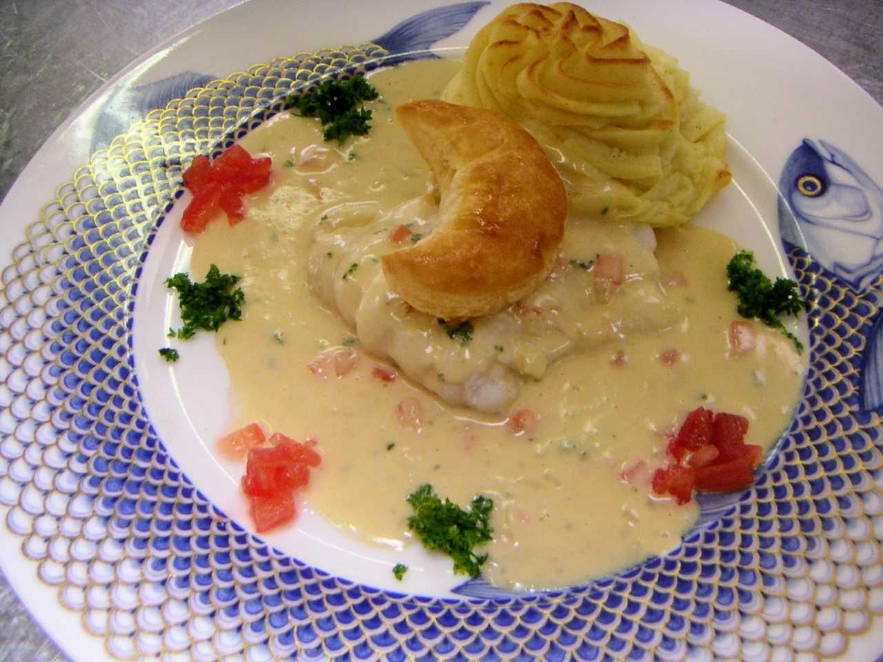 - Pommes Duchesse en een fleuron (half maantje in bladerdeeg) zijn in de oude klassieke Franse keuken de trouwe begeleiders van visgerechten.