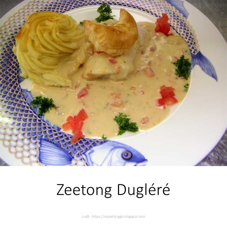 - De visfilets op warme borden schikken en overgieten met de Duglerésaus.