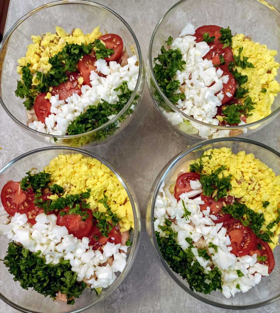 - De bodem van de coupes bedekken met de gesneden kropsla.
