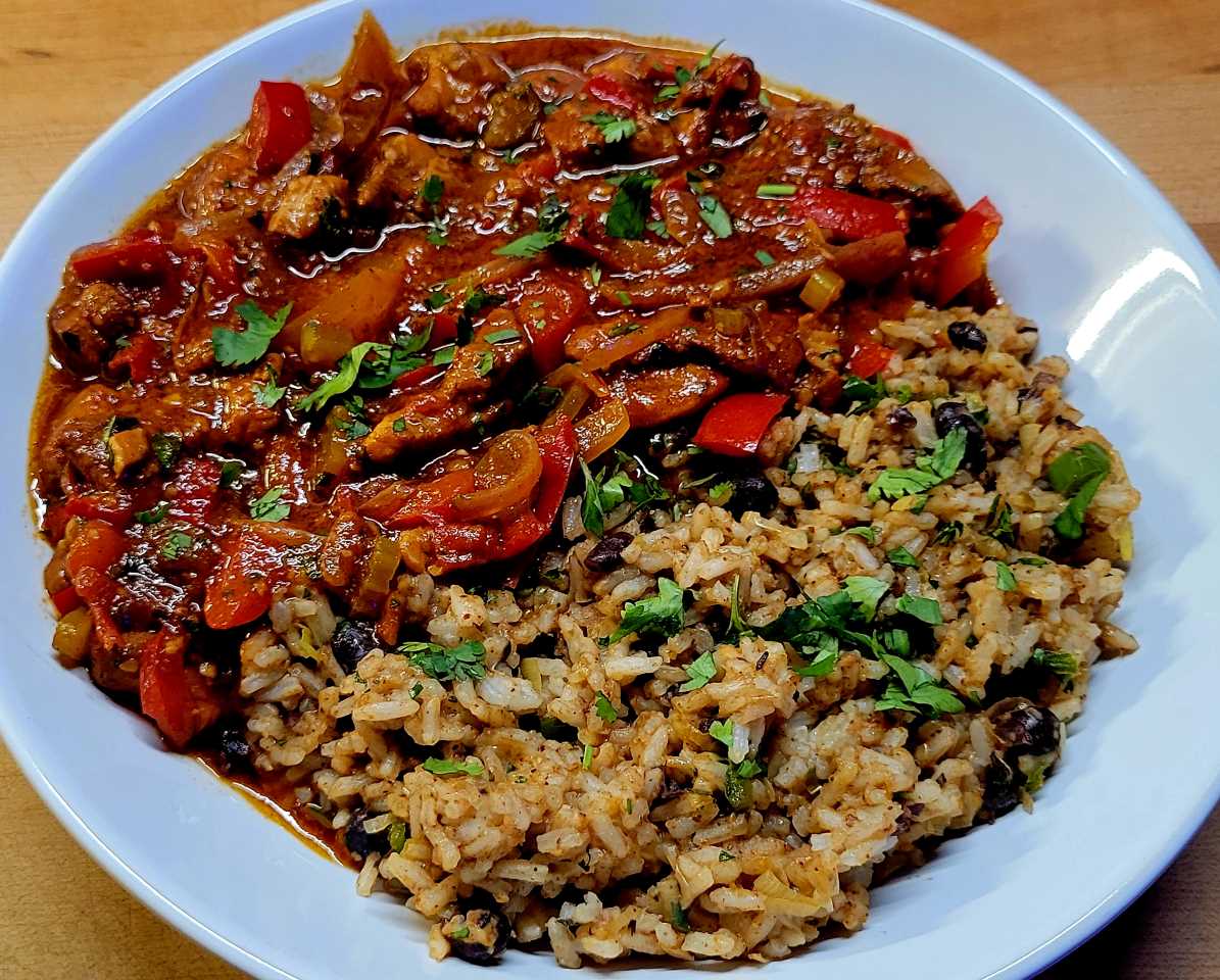 - Stir in the vegetables that you had set aside from marinating the chicken, plus cubanelle pepper, tomatoes, and olives. Cover, and simmer until the vegetables are cooked through, adding water by the tablespoon and stirring as it becomes necessary.