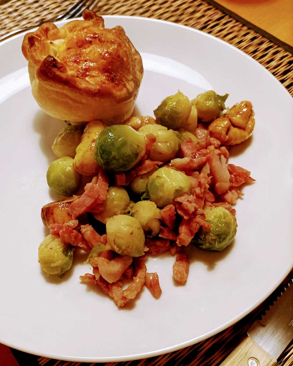 - Voor de vegetarische versie van dit gerecht het spek vervangen door 'gerookte speckstukjes' van de Vegetarische Slager.