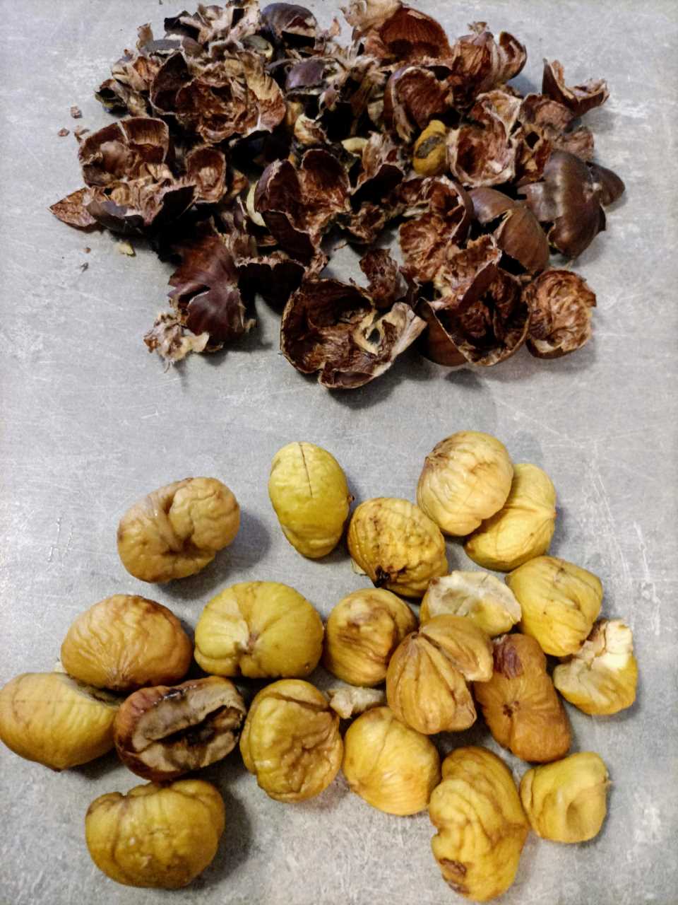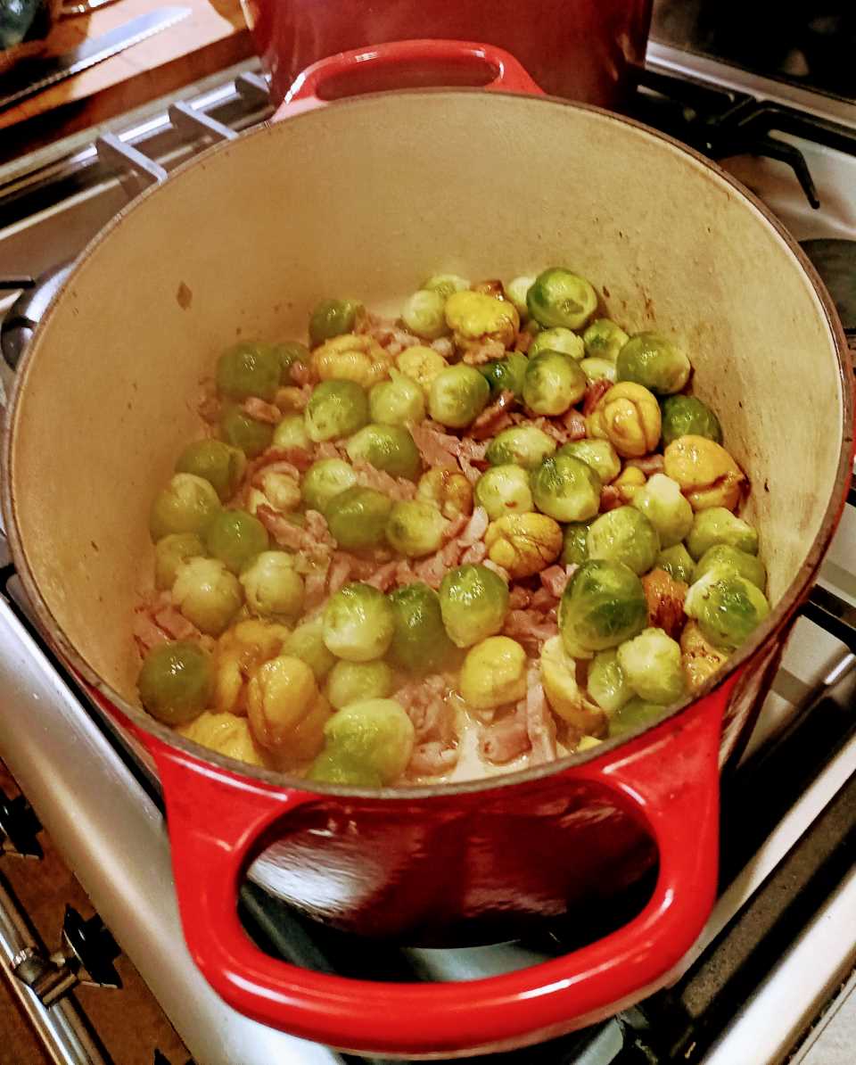 - Kastanjes toevoegen en onder deksel enkele minuten laten stoven.