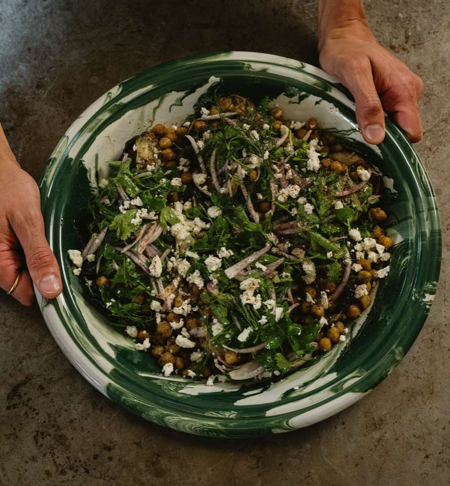 - Make the shallot salad: Add the olive oil, shallots, parsley, mint, lemon juice, and sumac to a medium bowl and toss to combine. Season with salt to taste.