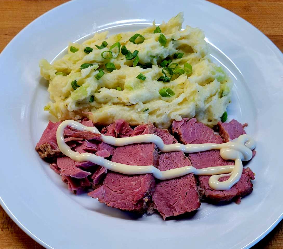 - Serve with boiled vegetables, mustard, or horseradish sauce.