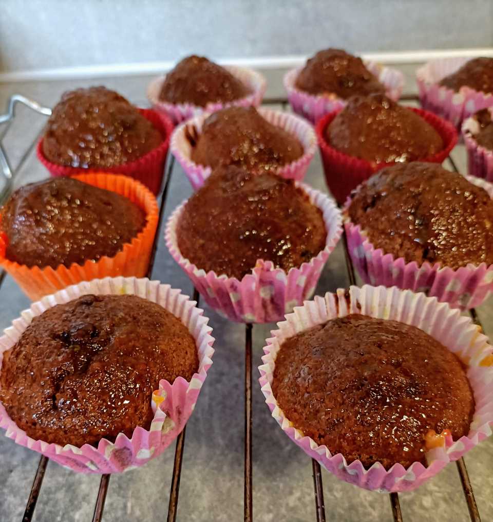 Kastanjemuffins met cacao nibs en sinaasappelsiroop