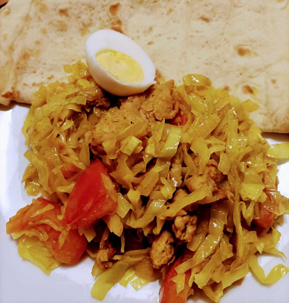 Roti met spitskool en kip