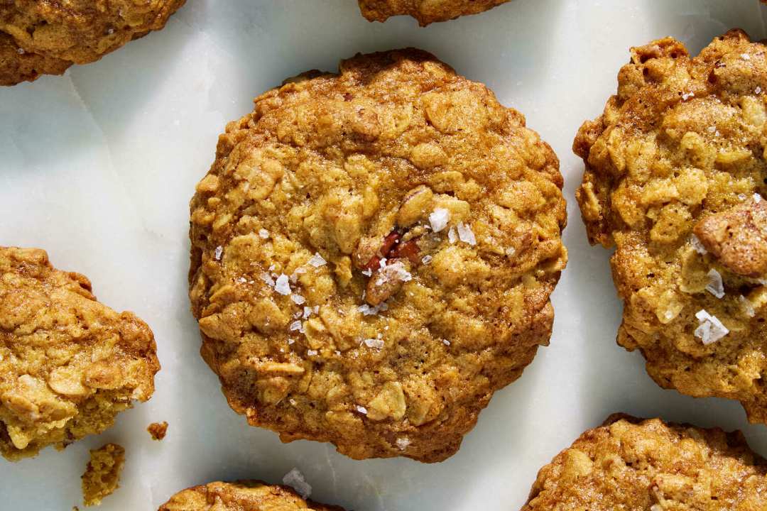 - 2. Add the pecans and stir until the milk solid bits are dark brown and the nuts smell toasty, 2 to 3 minutes. Turn off the heat and stir in the oats and salt until the oats have soaked up the butter. Cool until ready to use.