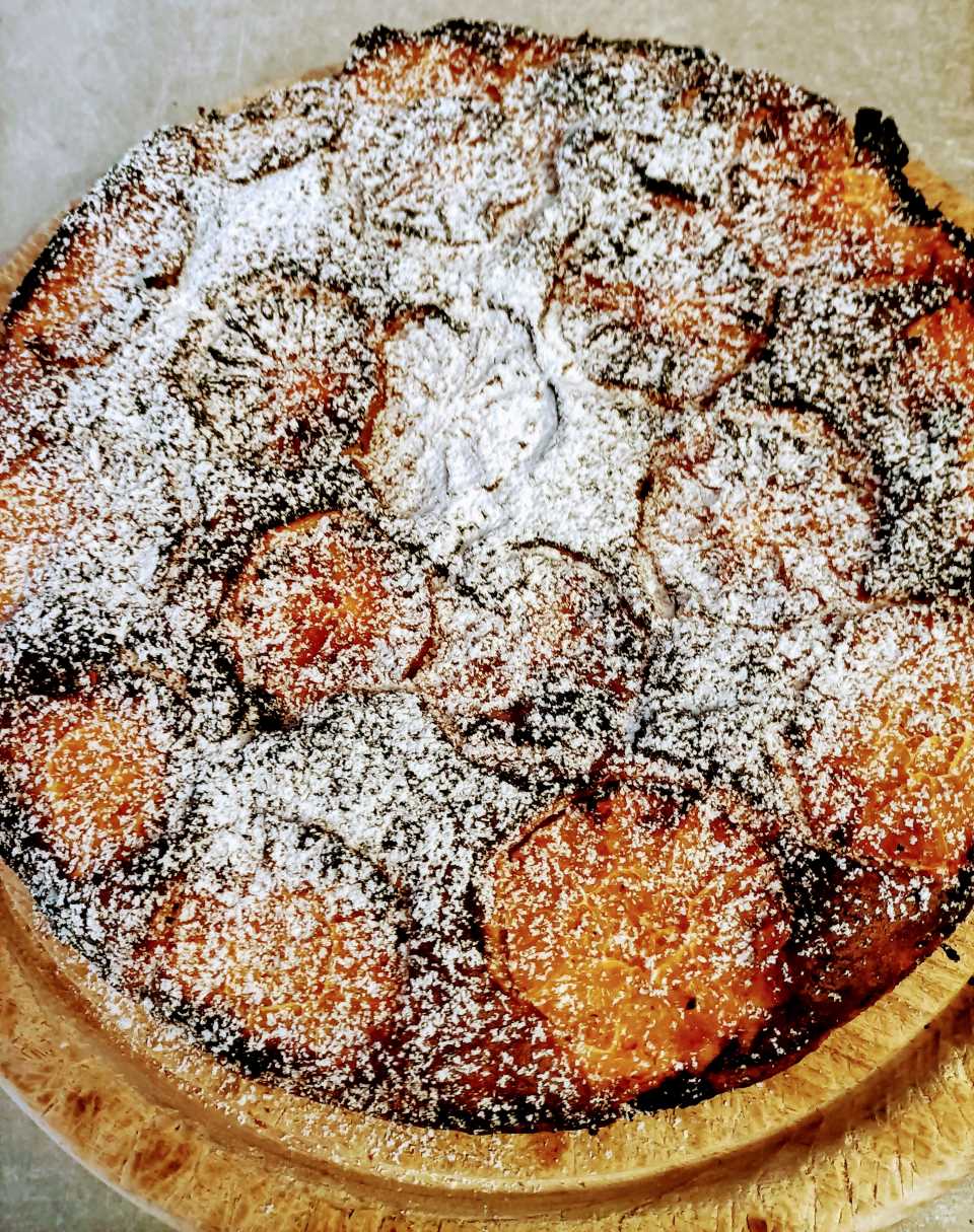 - springvorm.Snijd met een scherp mes de schil en het witte vlies van 2 sinaasappels en snijd het vruchtvlees in heel dunne plakken. Schik de sinaasappelplakjes op het beslag. Schenk de suikerstroop erover.