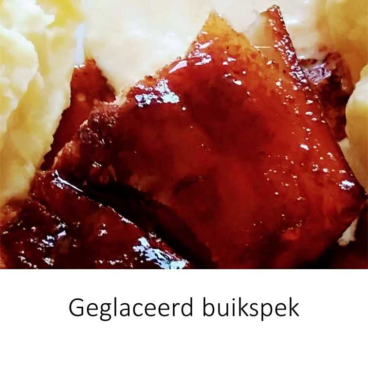 - Lat de stukken spek in de stroop zachtjes verder garen gedurende 20 minuten en draai regelmatig om.