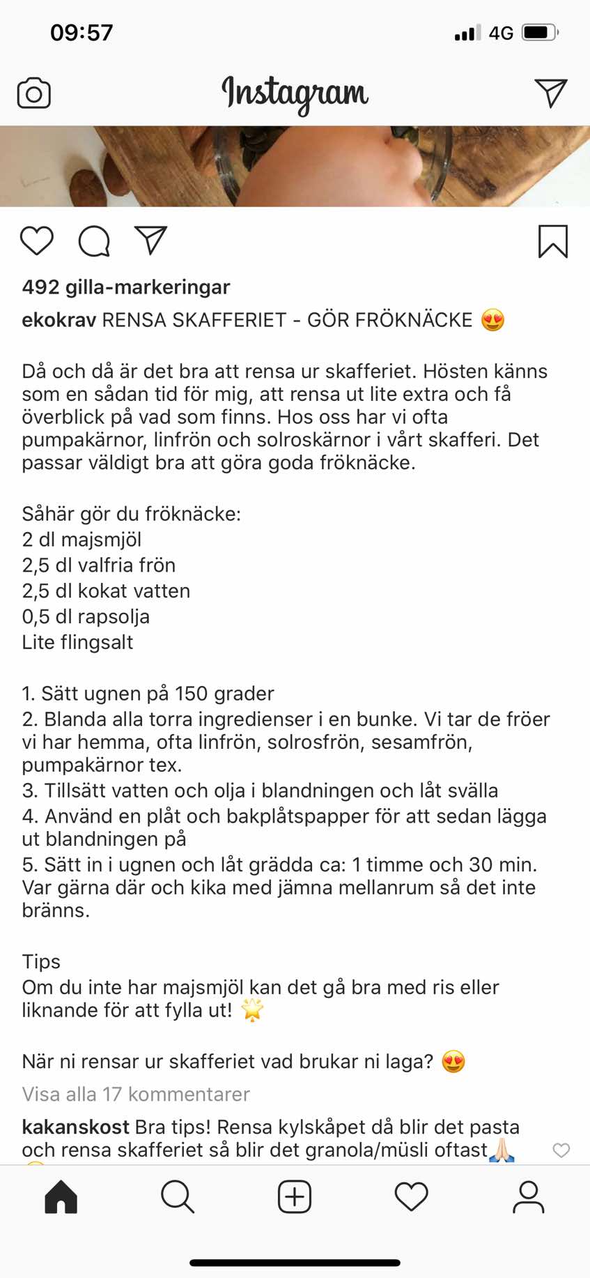 - Var gärna där och kika med jämna mellanrum så det inte bränns. Men knäcket ska vara torrt o hårt innan du tar ut det ur ugnen.