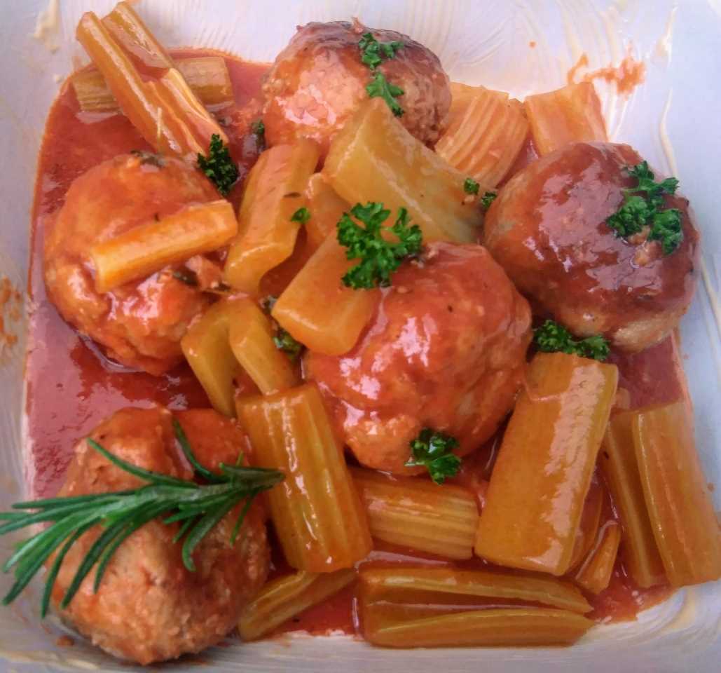 - Zelf gemaakte gehaktballen, een delicatesse! Bleekselderij, een ondergewaardeerde groente maar in deze bereiding komt ze uitstekend tot haar recht.