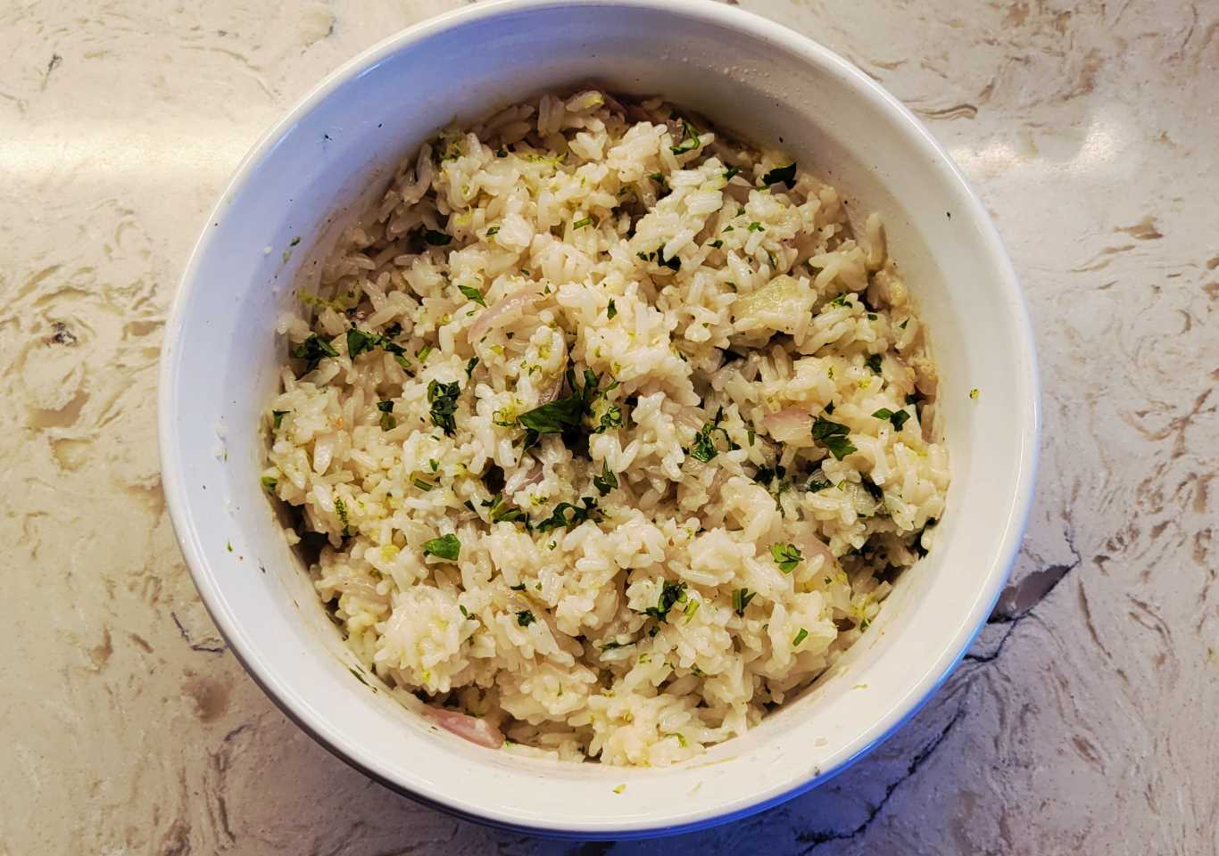 - Fluff the cooked rice with a fork. Add lime juice, lime zest, and salt. Mix well.