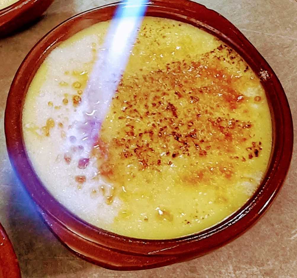 - bestrooien met suiker en de suiker karamelliseren met behulp van een brander.
