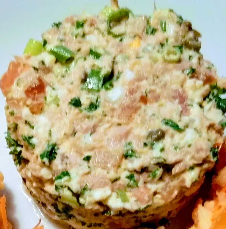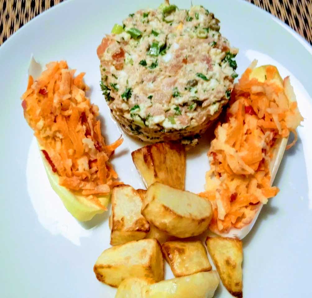 - gebruik een voedselring om de tartaartjes te vormen op de borden.