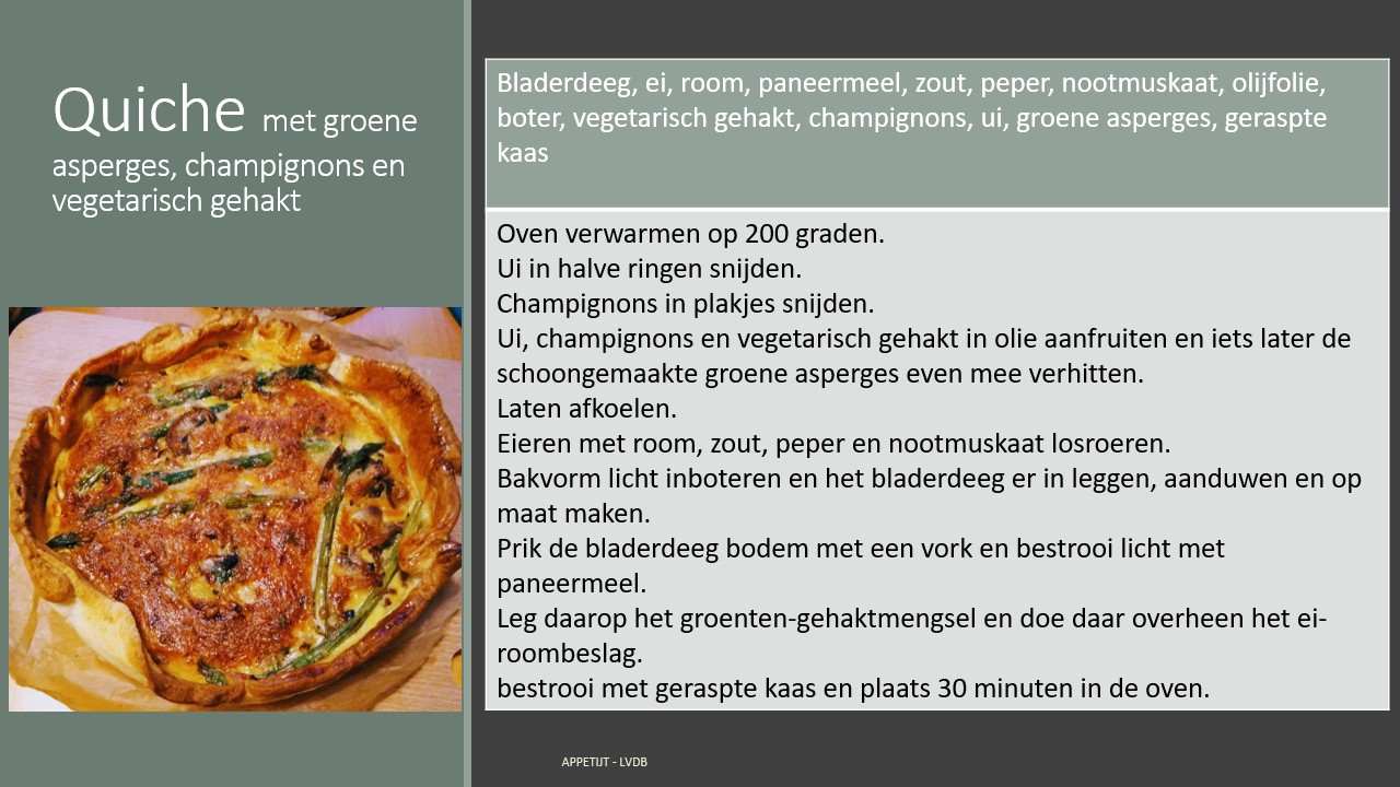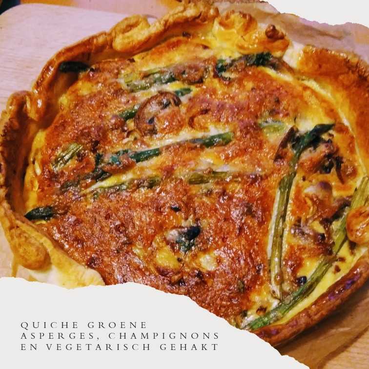 Quiche groene asperges, champignons en vegetarisch gehakt
